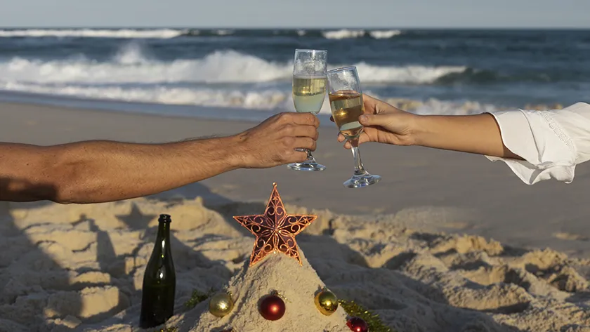 Что делать в новогоднюю ночь: ужин на пляже с шампанским, а потом встретить первый рассвет 2026-го прямо у океана.
