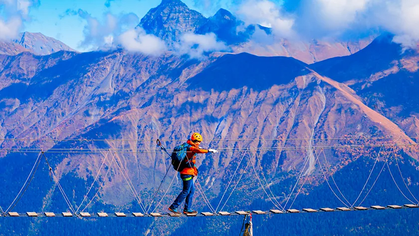 Экстремальная новинка для туристов, не боящихся высоты. Мост длиной 100 метров проложен через глубокое ущелье — 380 метров под ногами! С него открывается потрясающий вид на окрестности. Не волнуйтесь: безопасность на высоте, каждому туристу выдают страховочную систему и проводят инструктаж.