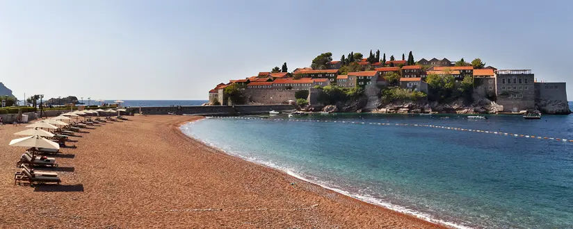 Свети Стефан — живописный остров-отель, соединенный с материком узкой перемычкой, стал символом Черногории благодаря своей уникальной архитектуре и великолепным пляжам. Это место отличается роскошным обслуживанием и уединенной атмосферой, что делает его идеальным для тех, кто ищет покой. Остановиться можно не только на самом острове, но и вокруг, на отличных пляжах — и со сногсшибательными видами на Свети-Стефан, что позволит сэкономить.