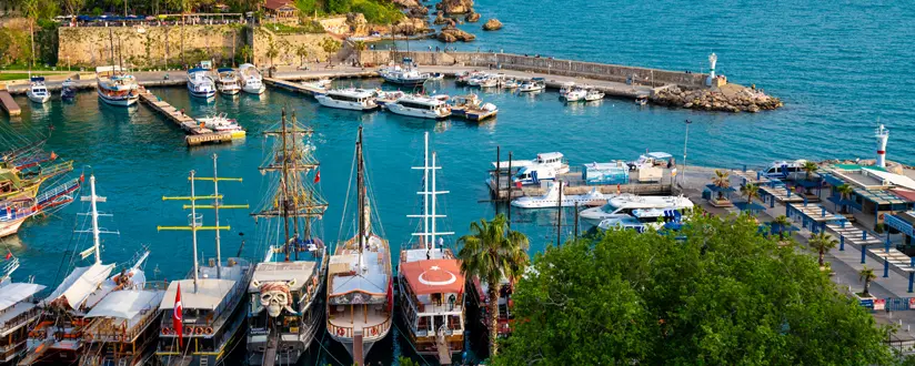 - Гавань Анталии — живописный порт с первоклассными рыбными ресторанами. Отсюда же отправляются всевозможные круизные суда на экскурсии вокруг Анталии.